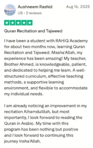 I struggled with letter sounds for years. After starting one-to-one sessions, my teacher corrected mistakes I never noticed. Now I read with confidence in prayer. — Ahmed K., USA
